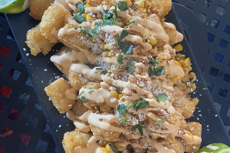 To start off, I ordered The Steel Magnolia (Espolon Tequila Reposado, pomegranate, habanero hibiscus syrup & lime) drink. I LOVED this drink and would highly suggest ordering it if you stop by. It was an amazing combination of sweet, spicy and sour and paired perfectly with an appetizer of the Street Corn Tots (Tater tots, roasted corn, aleppo pepper, chipotle aioli, cotija cheese, cilantro). I really enjoyed this appetizer and would order again. Definitely recommend using the lime wedges as the perfect touch!